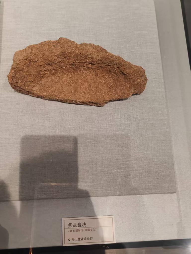在“浙里寻珍:2025年度考古成果展”上展出的煎盐盘块。新华社记者 冯源 摄