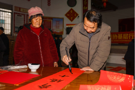 近日,杭州市美术家协会联合淳安县美术家协会、县书法家协会和县摄影家协会走进浙江省杭州市淳安县左口乡显后村开展“新春送福文化惠民”活动,为村民书写春联、送上福字,并同步开展公益摄影服务,让大家在笔墨香和快门声中迎接新春。