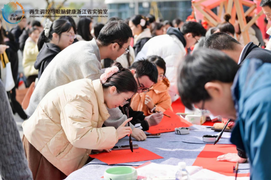 新春游园会上,科研人员放下精密仪器,拿起毛笔挥毫泼墨,将对新年的期许融入笔下的“福”字与春联中。