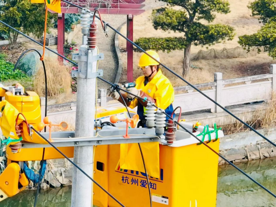 2月3日,在浙江省杭州市余杭区瓶窑镇黄泥口村,浙江大有集团余杭分部完成10千伏长命H506线黄泥口分线带电接跌落式熔断器上引线作业,周边村民用电全程未受影响,实现了供电能力的“无感增强”。