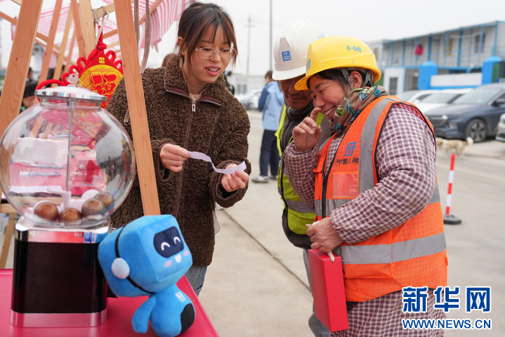 2月5日,建设者在“趣味中国年”摊位参加知识问答活动。