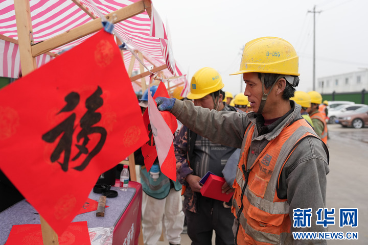 2月5日,浙江省杭州市钱塘区义蓬街道沙堤社区在中建四局江海商务中心项目工地旁开展迎新春主题活动,设置便民服务摊位,为建设者提供服务保障,传递节日关怀。