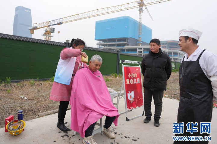 2月5日,志愿者为建设者免费理发。