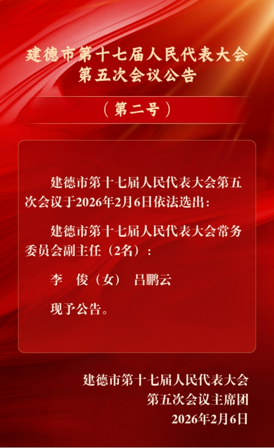 会议根据《建德市第十七届人民代表大会第五次会议选举办法》,采取无记名投票方式,进行等额选举。根据选举结果,陶峰同志当选为建德市人民政府市长;李俊、吕鹏云同志当选为建德市人大常委会副主任;李可大、蒋一新、蒋建成、蔡新春同志当选为建德市第十七届人大常委会委员。