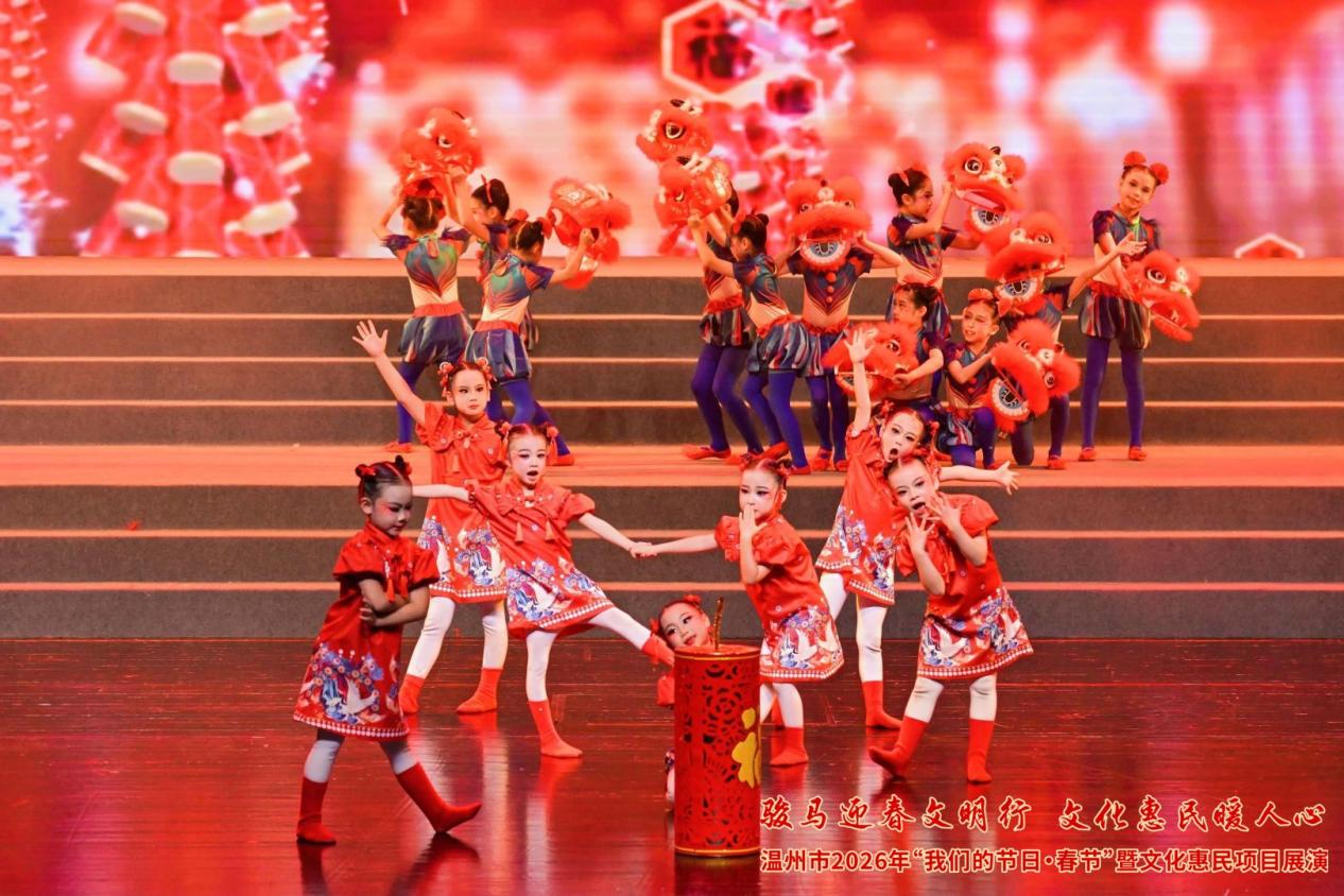春节临近,各地年味渐浓。2月10日,浙江省温州市2026年“我们的节日·春节”暨文化惠民项目展演上演,旨在丰富群众精神文化生活,让市民在共享文化发展成果的美好氛围中喜迎春节。