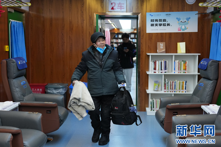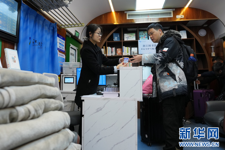 2月10日,工作人员在“星辰守护”旅客夜间休息区为旅客办理登记,旅客按需可以领取毛毯。