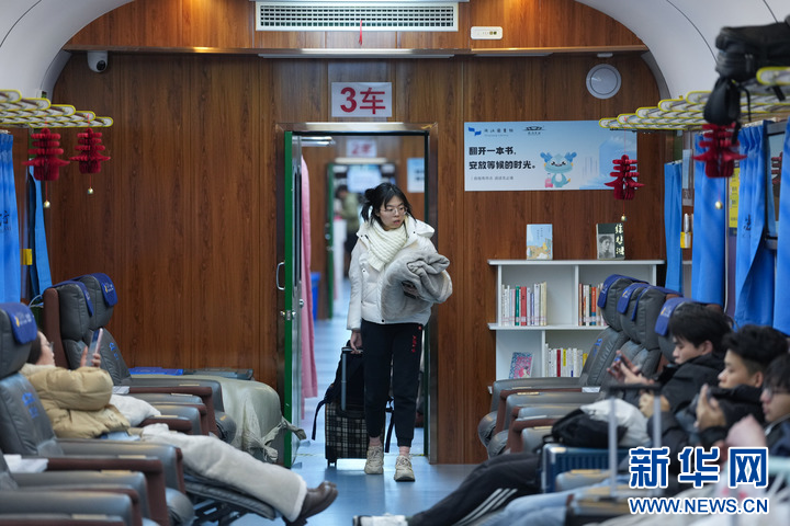 2月10日,旅客走入杭州东站“星辰守护”旅客夜间休息区寻找座位。
