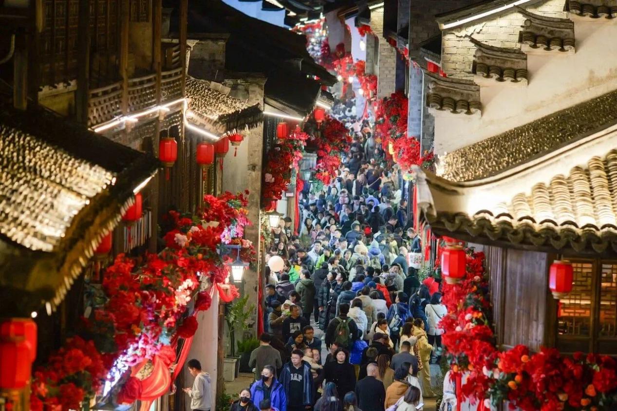除了畅通交通外,临海还创新打造了多个特色打卡点,丰富游客游览体验。紫阳街花境、小龙须巷的《雨巷》沉浸式意境打造,让游客邂逅江南的婉约之美;兴善门网红黄金树以祈愿树形式焕新,搭配祈愿牌、红包瀑布装置,成为新春祈福的打卡地。