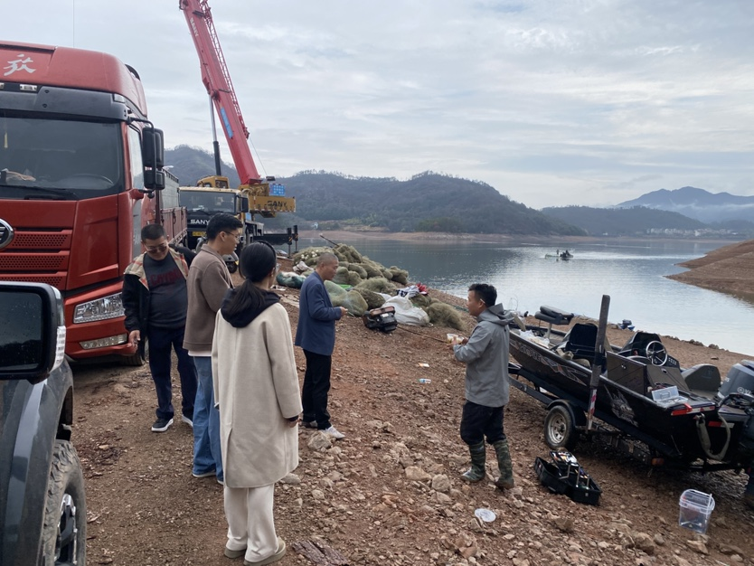 据了解,杨溪水库管理中心多年来持续践行“生态优先、绿色发展”理念,探索并稳固了“以水养鱼、以鱼护水”的良性循环路径,将水源保护置于核心地位,通过水位调度与水域管理,在保障饮用水源安全与供水节约的前提下,为渔业创造了稳定健康的生长环境。同时,深入推进“以林固土、以鱼养水”的立体生态治理模式:一方面,强化与公安、生态环境、行政执法等部门的协同,开展常态化联合巡查执法,制止钓鱼、游泳等可能影响水质的活动;另一方面,科学实施鱼类增殖放流、松材线虫病树木治理,持续优化水域生态系统。花鲢鱼、白鲢鱼等滤食性鱼类作为“天然净水器”的作用得到充分发挥,降低了水体富营养化风险,提升了水库整体生态自净能力与生态效益。