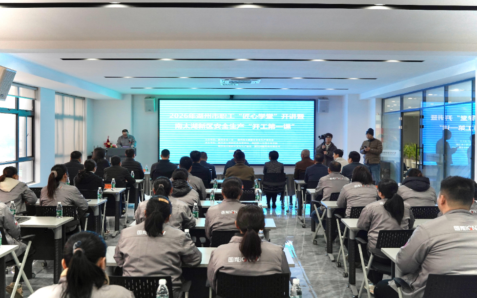 近日,浙江省湖州市总工会重点打造的职工公益培训品牌“匠心学堂”2026年系列活动的首场培训课在南太湖新区浙江国能科技有限公司开讲。现场,来自该企业各岗位的40余名职工代表齐聚一堂,跟着讲师学习如何调整状态、摆脱节后综合征,以饱满热情投入复工复产。