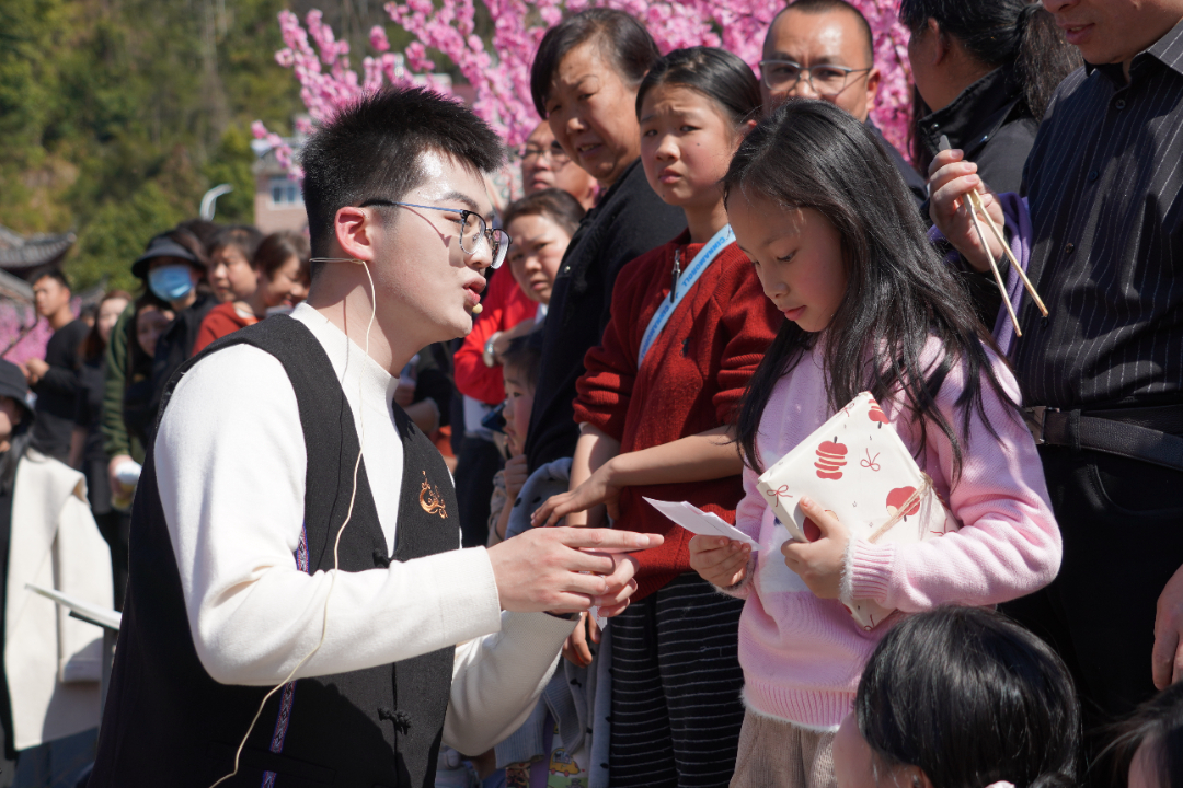 宣讲尾声,宣讲员与研学小朋友带领群众宣读《文明赏花公约》,融入文明理念。活动随后还配套推出剧本游、音乐会、畲桃集市、非遗打铁花等文旅体验,实现“宣讲+文旅”深度融合,让群众在赏景品文化中深化对理论的理解。