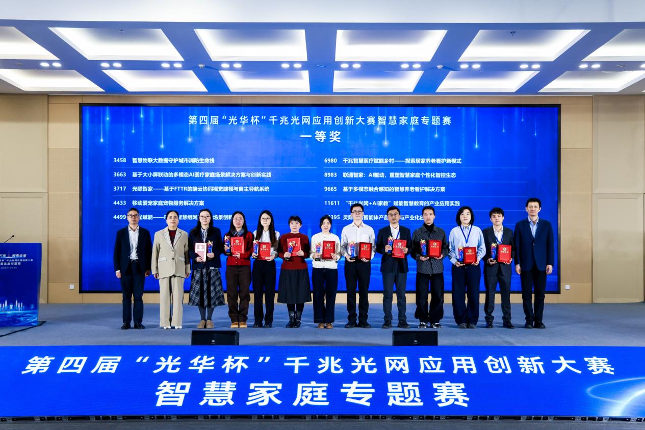 经过决赛现场的比拼与评审,本次大赛最终评选出一等奖10个、二等奖20个、三等奖16个。获奖项目覆盖了全光组网、智能家居、沉浸式应用、家庭关爱、康养安防、AI终端等多个前沿细分领域。