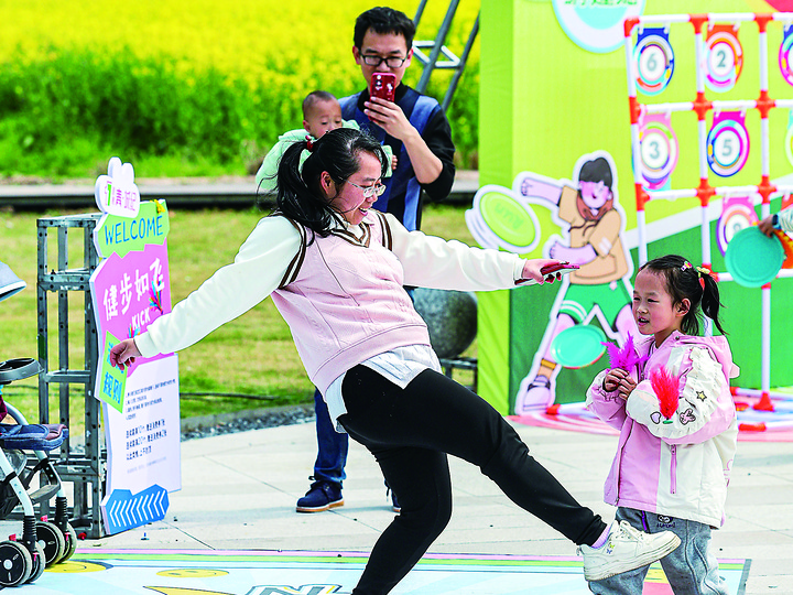 3月15日,游客在浙江建德城南城市田园油菜花田边的消费市集游玩,体验“春日经济”。新华社记者徐昱摄