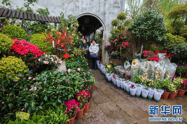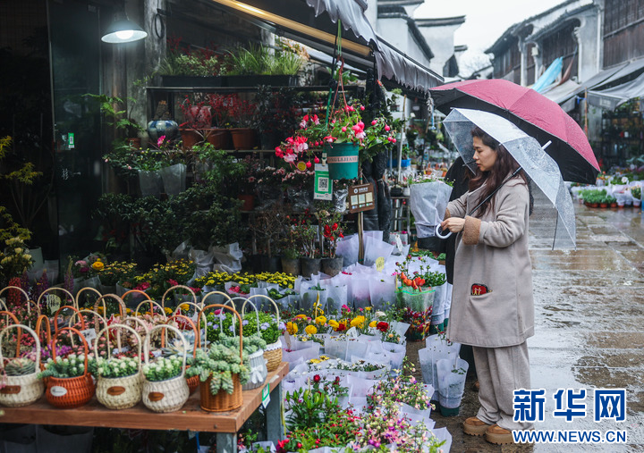 3月24日,消费者在月河历史文化街区的花店选购花卉。
