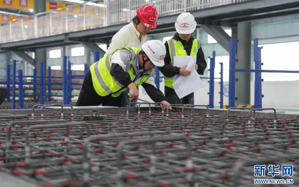 3月31日,技术人员在嘉善轨道板场操作自动化设备进行无砟轨道板的混凝土浇筑振捣作业。