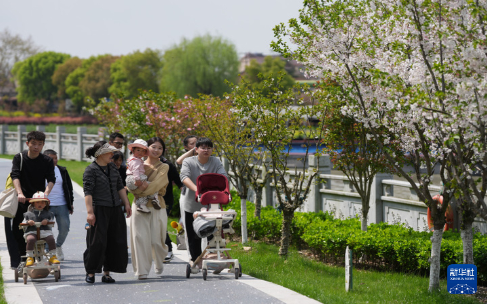 4月4日,游客在湖州市南浔区善琏镇含山风景区漫步赏花。