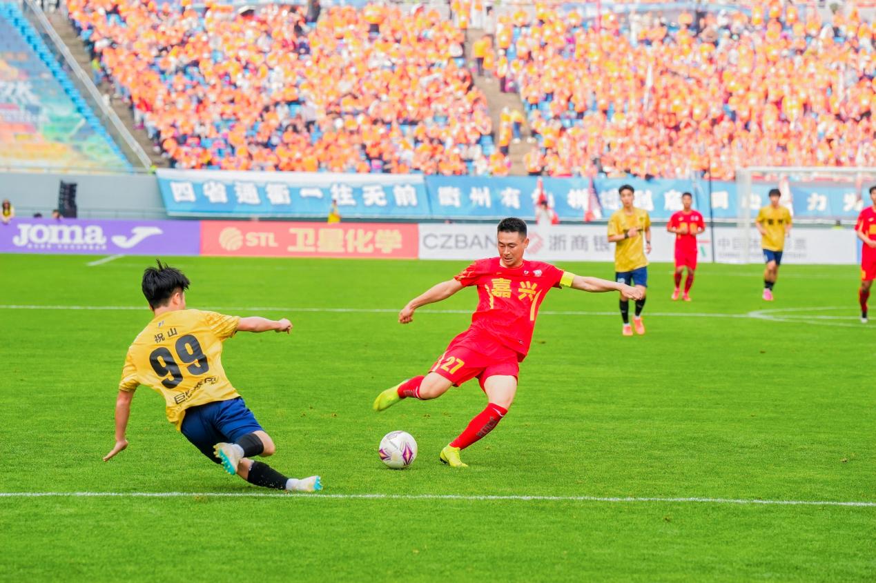 4月6日,2026浙商银行浙江省城市足球联赛(吴越杯)在浙江省嘉兴市体育中心正式开踢。场内近3万名球迷观众热情高涨,全程呐喊助威。在首轮较量中,嘉兴队最终以1:0战胜衢州队,成功拿下“吴越杯”首场胜利。