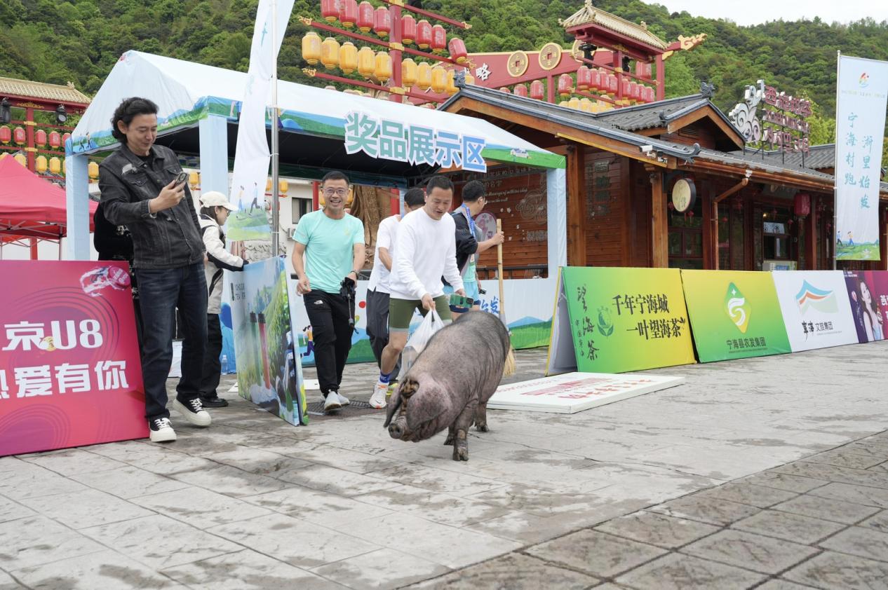 经过激烈角逐,来自宁波的选手李金鑫率先冲过终点,摘得桂冠。“沿途的风景很美,大家的加油声给了我很大动力,黑猪大奖真的很特别,我很喜欢!”延续往届特色,本届赛事依旧以乡土农产品为奖项,一等奖为岔路黑猪,二、三等奖分别为山羊、走地鸡等生态农产品。这份带着烟火气的奖励,也让赛事更具乡村辨识度与吸引力。不少跑团纷纷表示,特色农产品奖品比普通奖牌更有意义。