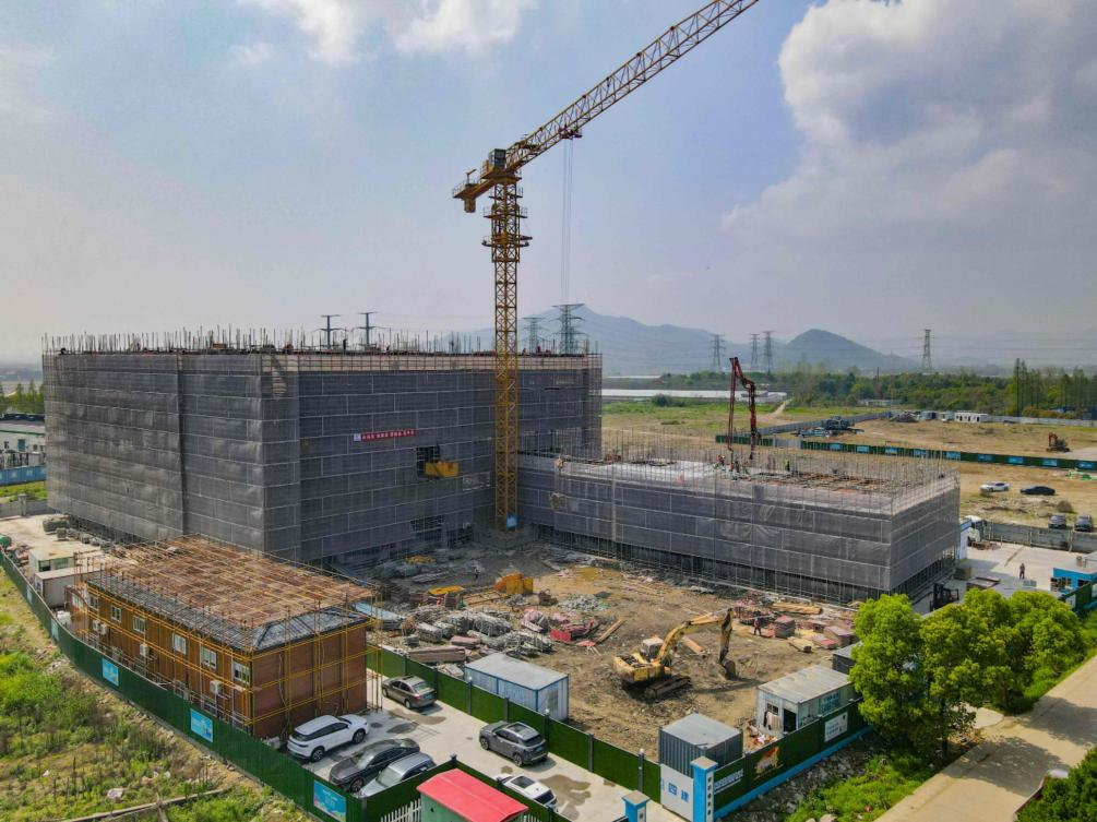 作为园区重点产业项目之一,九荣智控项目已初具雏形。7层高的厂房和9层办公楼,施工正全速推进。据悉,九荣智控的前身为宁波九荣环保科技有限公司,2016年作为高层次人才企业落户镇海,凭借节能环保的集成控制核心技术赢得了市场,在2022年跻身规上企业并保持产值稳步增长,近两年,发展又蒸蒸日上。
