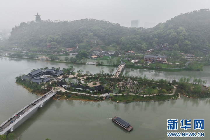 4月15日,游客在温州园博园瓯越园游览。这是浙江温州的主题园,由中建三局华东公司等联合承建。