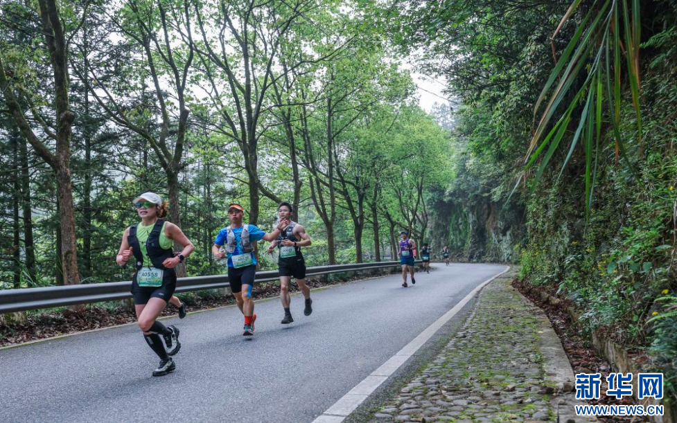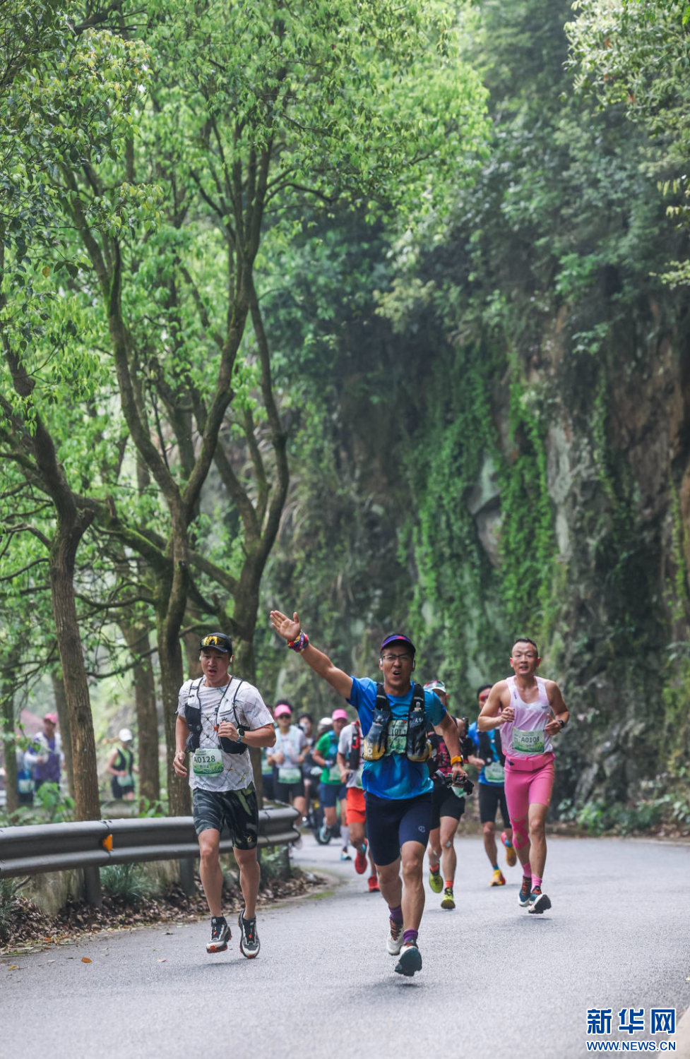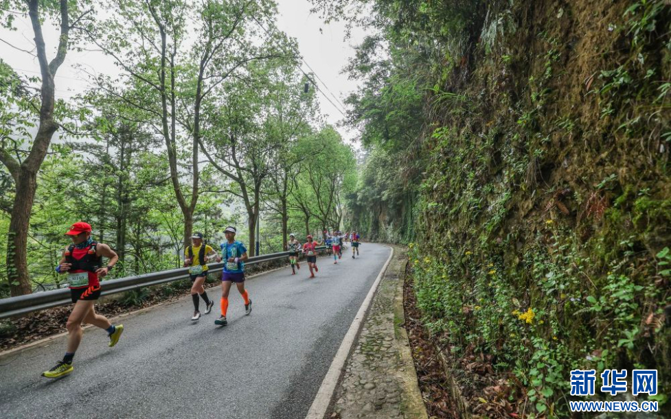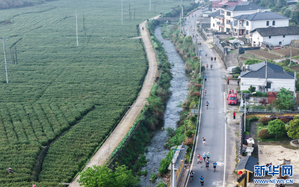 4月19日,选手们奔跑在山野间(无人机照片)。