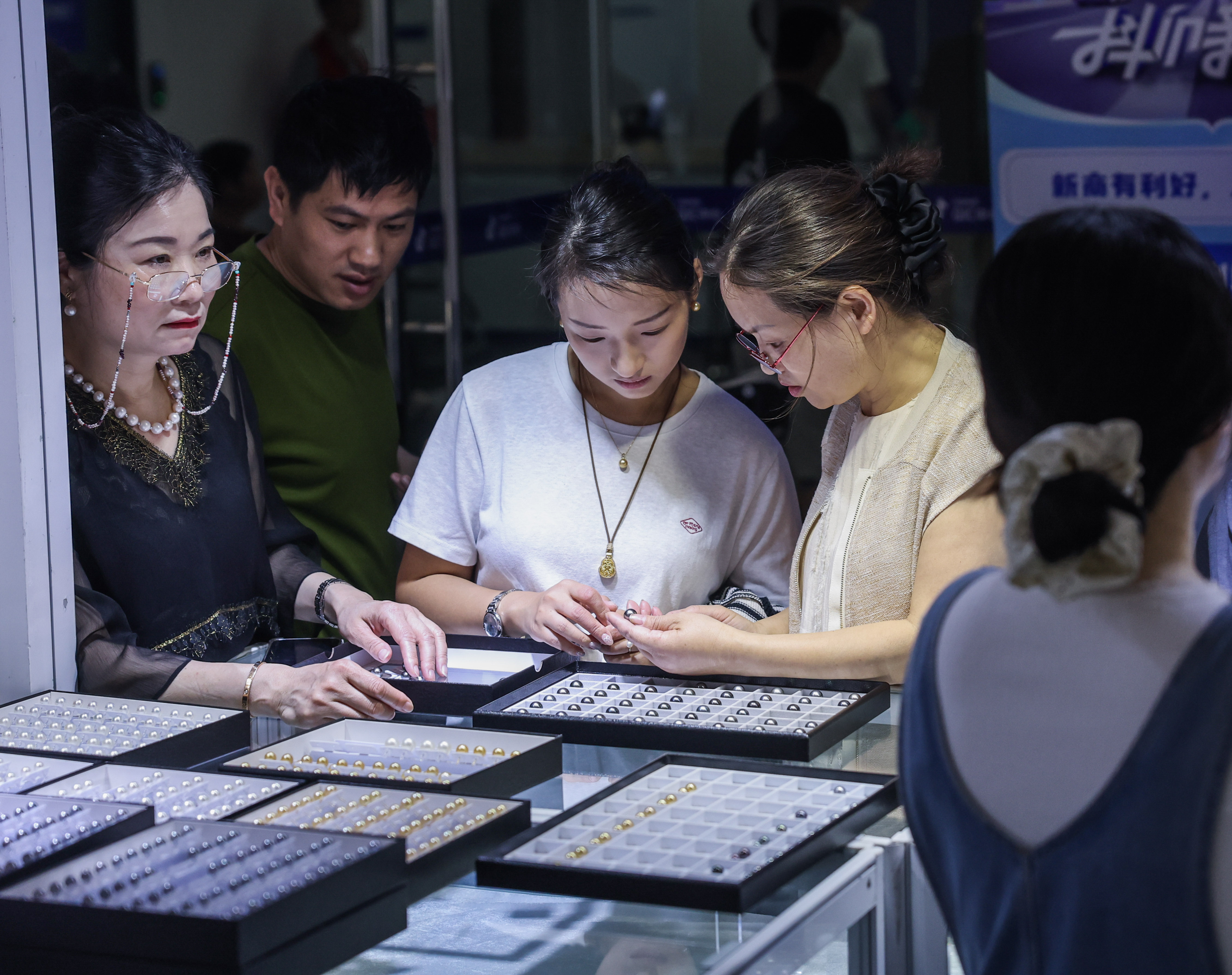 在被称为“中国珍珠之都”的浙江绍兴诸暨市,珍珠产业正通过各类线上平台,实现从“等客上门”到“货达全球”。目前,当地珍珠市场规模已突破500亿元,其中线上销售额占比超60%。(记者黄筱)