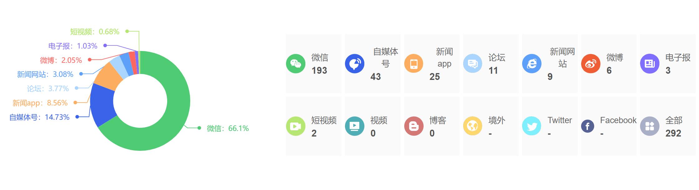 截至目前,该文章在互联网上传播总量为292篇,其中7月28日是信息发布的高峰期。各信源的信息发布情况中,微信信息占比最大,其次是自媒体号和新闻APP,信息量分别为193篇、43篇、25篇,占比分别为66.1%、14.73%、8.56%。(数据来源:新华睿思系统)