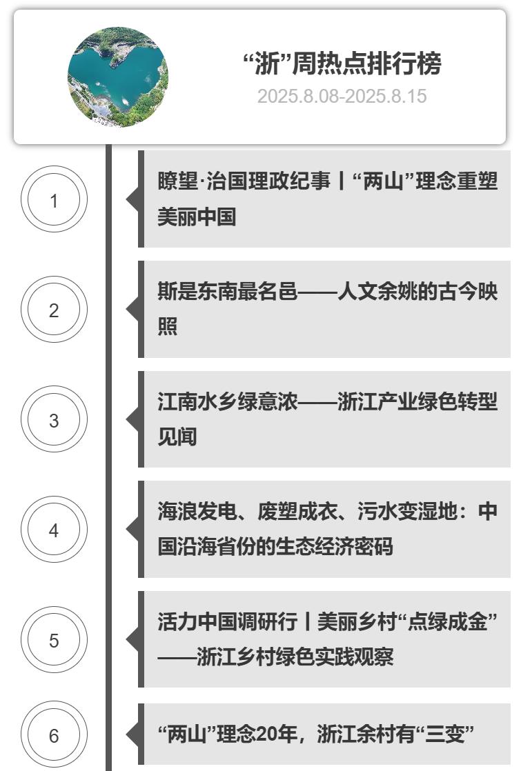 生态兴则文明兴。“两山”理念改变中国、影响世界,蕴含着对人类发展的思考与探索,鲜明提出人与自然、生态与经济、发展与保护的辩证统一,为全球环境治理和绿色转型贡献中国力量、中国方案。(记者邬焕庆 方问禹 朱涵 郑可意)