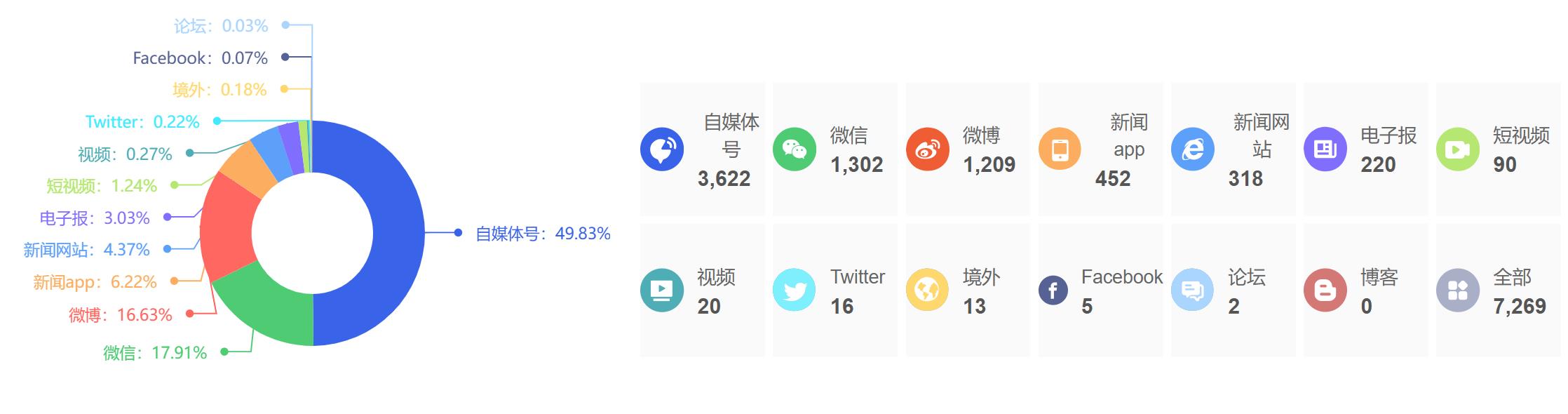 截至目前,该文章在互联网上传播总量为7269篇,其中8月14日是信息发布的高峰期。各信源的信息发布情况中,自媒体号信息占比最大,其次是微信和微博,信息量分别为3622篇、1302篇、1209篇,占比分别为49.83%、17.91%、16.63%。(数据来源:新华睿思系统)