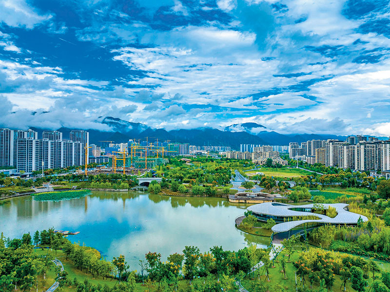 夏日傍晚,浙江省丽水市两湖公园里,穿过大溪河谷的风送来徐徐凉意,市民们漫步园中,纳凉休憩。多年前,地势低洼的此处是丽水市区易涝点,2021年,寿元湖、明星湖两处人工湖建成,调蓄雨洪,防范内涝。两湖进一步构成丽水市的城市风廊,持续消解城市热岛效应、浊岛效应。(记者吴帅帅)