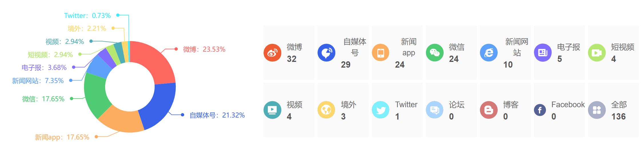 截至目前,该文章在互联网上传播总量为136篇,其中9月16日是信息发布的高峰期。各信源的信息发布情况中,微博信息占比最大,其次是自媒体号和新闻APP,信息量分别为32篇、29篇、24篇,占比分别为23.53%、21.32%、17.65%。(数据来源:新华睿思系统)