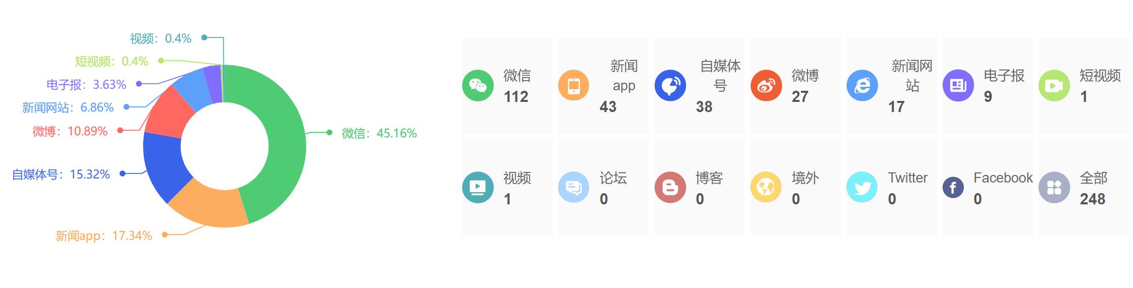 截至目前,该文章在互联网上传播总量为248篇,其中9月15日是信息发布的高峰期。各信源的信息发布情况中,微信信息占比最大,其次是新闻APP和自媒体号,信息量分别为112篇、43篇、38篇,占比分别为45.16%、17.34%、15.32%。(数据来源:新华睿思系统)