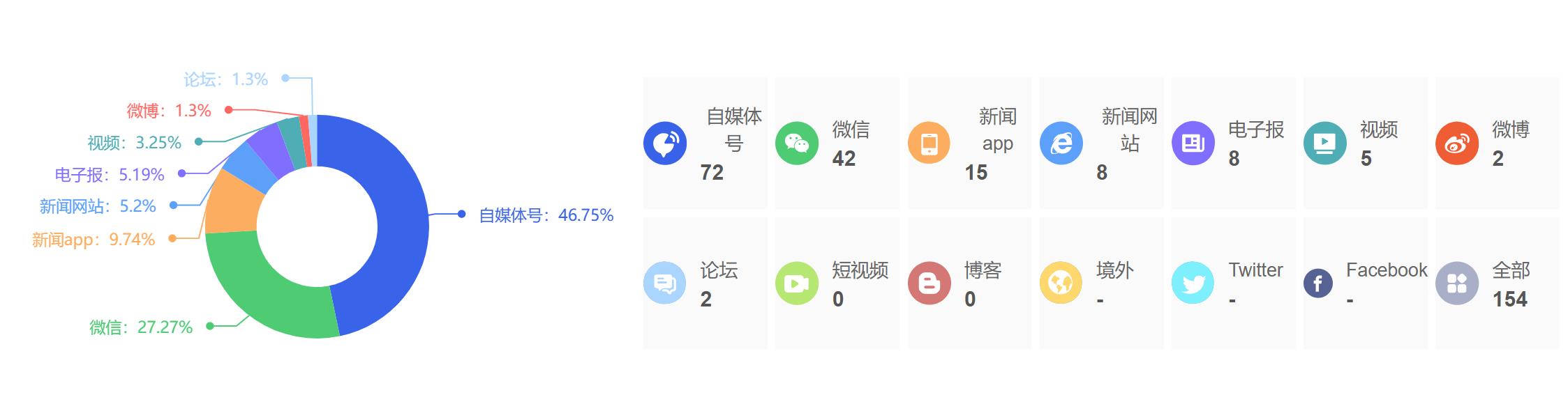 截至目前,该文章在互联网上传播总量为154篇,其中10月15日是信息发布的高峰期。各信源的信息发布情况中,自媒体号信息占比最大,其次是微信和新闻APP,信息量分别为72篇、42篇、15篇,占比分别为46.75%、27.27%、9.74%。(数据来源:新华睿思系统)