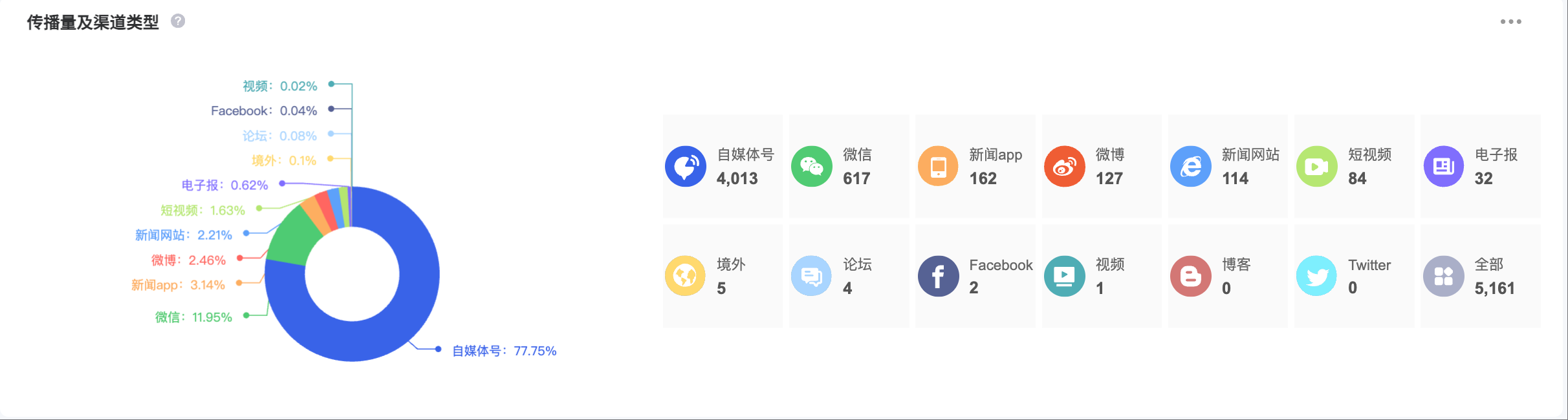 截至目前,该文章在互联网上传播总量为5161篇,其中8月7日是信息发布的高峰期。各信源的信息发布情况中,自媒体号信息占比最大,其次是微信和新闻app,信息量分别为4013篇、617篇、162篇,占比分别为77.75%、11.95%、3.14%。(数据来源:新华睿思系统)