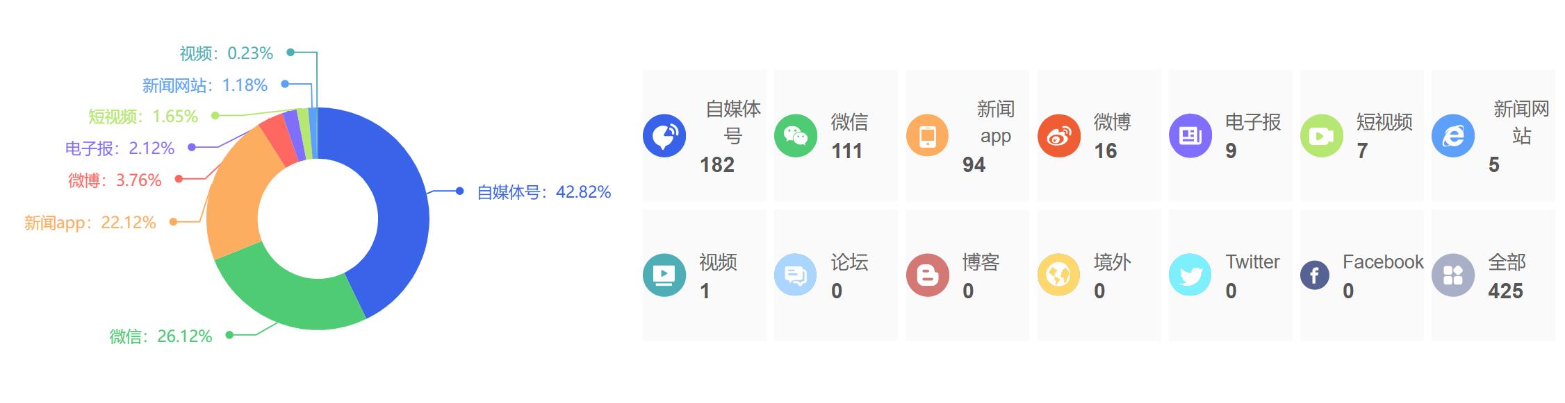 截至目前,该文章在互联网上传播总量为425篇,其中10月26日是信息发布的高峰期。各信源的信息发布情况中,自媒体号信息占比最大,其次是微信和新闻APP,信息量分别为182篇、111篇、94篇,占比分别为42.82%、26.12%、22.12%。(数据来源:新华睿思系统)