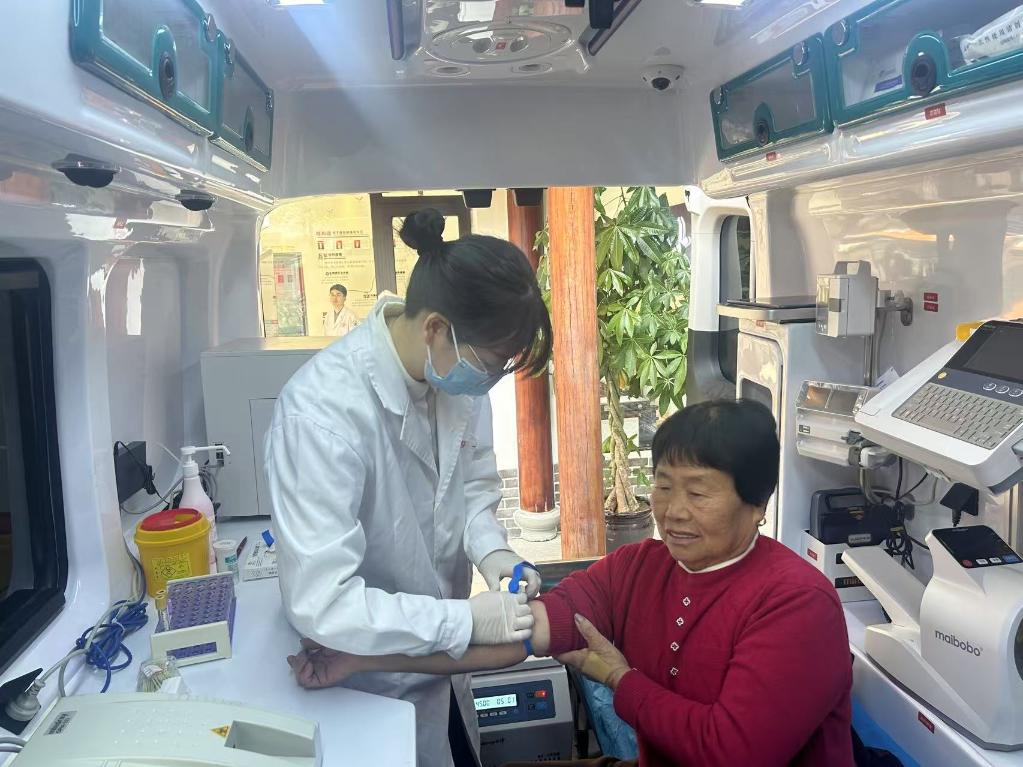 在温州市永嘉县沙头镇岭下村,82岁的王洪兰老人和邻居们,早早走进村里的便民服务大厅。每周四上午,是他们与“智慧流动医院”巡回诊疗车不变的约定。(记者李恒 黄筱)