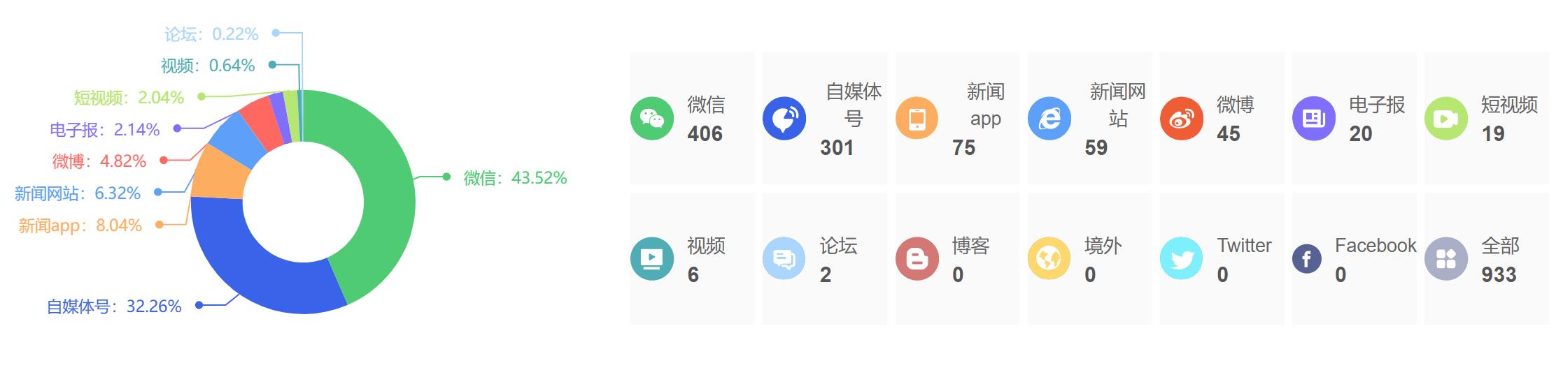 截至目前,该文章在互联网上传播总量为933篇,其中12月16日是信息发布的高峰期。各信源的信息发布情况中,微信信息占比最大,其次是自媒体号和新闻APP,信息量分别为406篇、301篇、75篇,占比分别为43.52%、32.26%、8.04%。(数据来源:新华睿思系统)