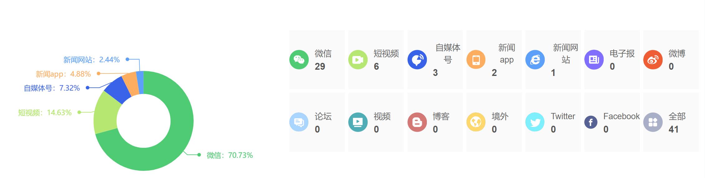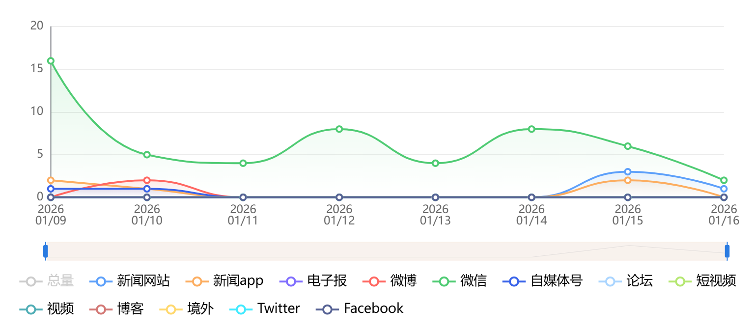 截至目前,该文章在互联网上传播总量为41篇,其中1月15日是信息发布的高峰期。各信源的信息发布情况中,微信信息占比最大,其次是短视频和自媒体号,信息量分别为29篇、6篇、3篇,占比分别为70.73%、14.63%、7.32%。(数据来源:新华睿思系统)