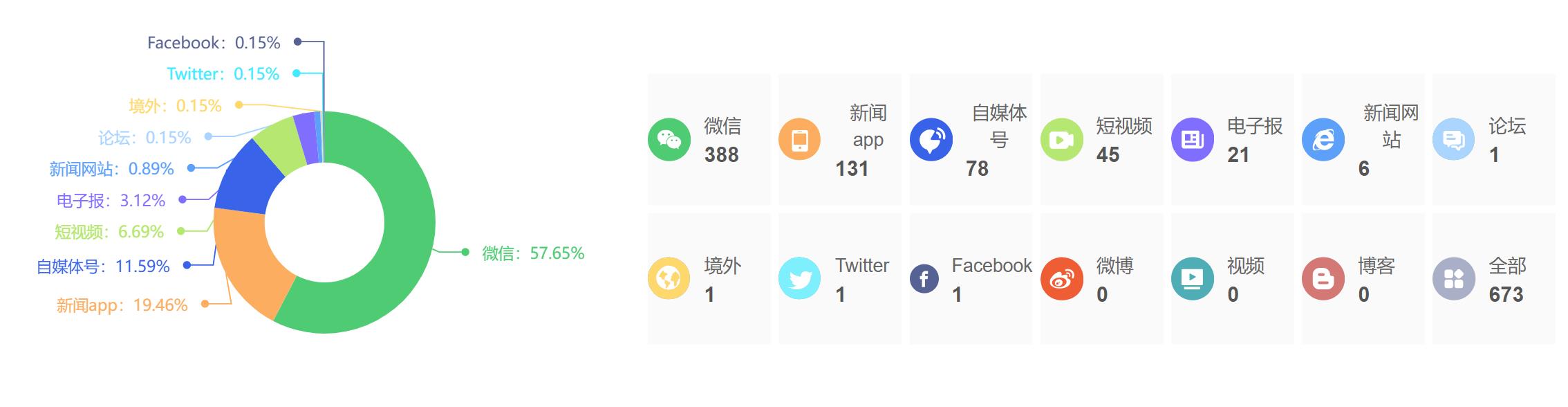 截至目前,该文章在互联网上传播总量为673篇,其中1月10日是信息发布的高峰期。各信源的信息发布情况中,微信占比最大,其次是新闻APP和自媒体号,信息量分别为388篇、131篇、78篇,占比分别为57.65%、19.46%、11.59%。(数据来源:新华睿思系统)