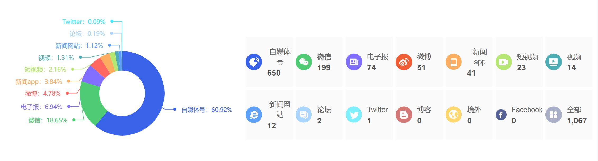 截至目前,该文章在互联网上传播总量为1067篇,其中2月13日是信息发布的高峰期。各信源的信息发布情况中,自媒体号信息占比最大,其次是微信和电子报,信息量分别为650篇、199篇、74篇,占比分别为60.92%、18.65%、6.94%。(数据来源:新华睿思系统)