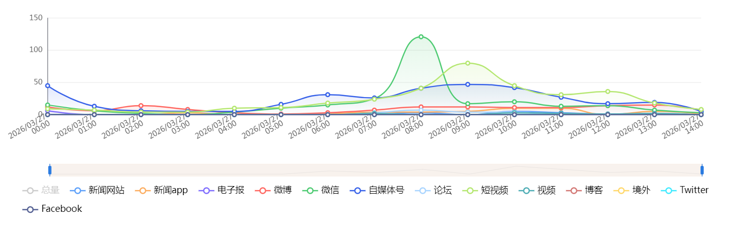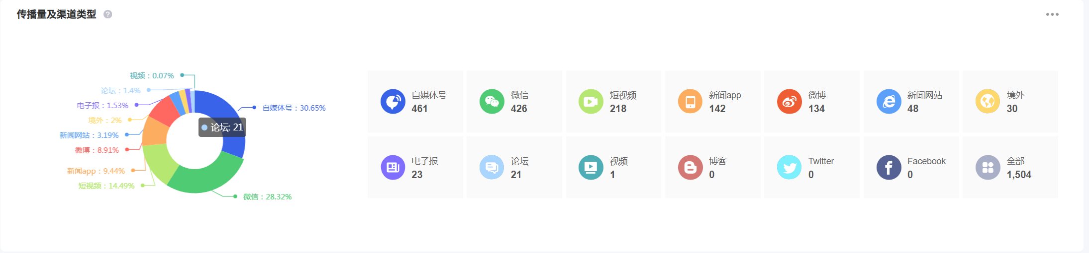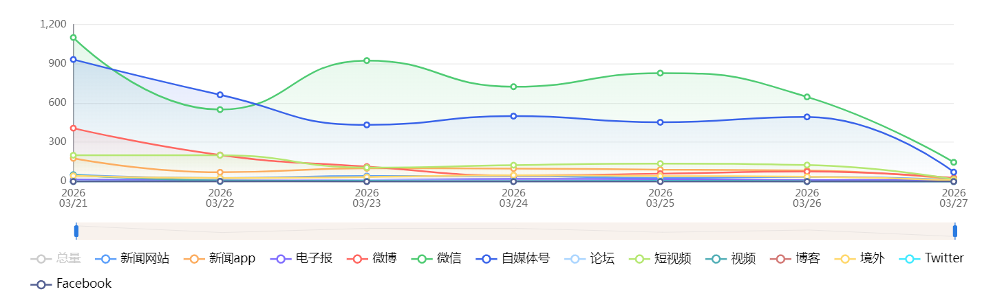 截至目前,该文章在互联网上传播总量为1262篇,其中3月27日是信息发布的高峰期。各信源的信息发布情况中,短视频信息占比最大,其次是自媒体号和微信,信息量分别为346篇、345篇、272篇,占比分别为27.43%、27.34%、21.55%。(数据来源:新华睿思系统)
