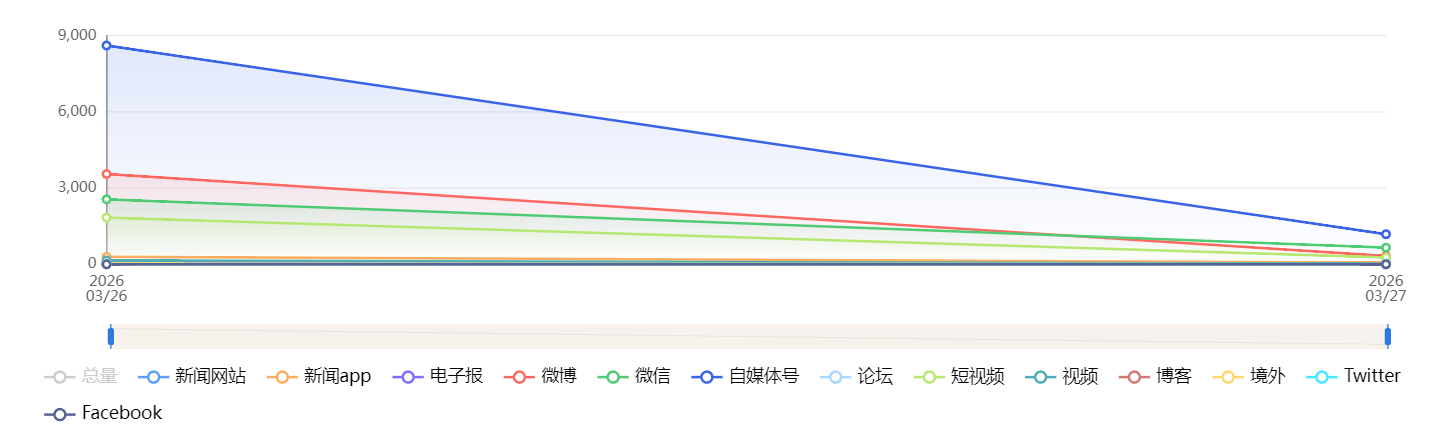 截至目前,该文章在互联网上传播总量为1.97万篇,其中3月26日是信息发布的高峰期。各信源的信息发布情况中,自媒体号信息占比最大,其次是微博和微信,信息量分别为9804篇、3884篇、3215篇,占比分别为49.7%、19.69%、16.3%。(数据来源:新华睿思系统)