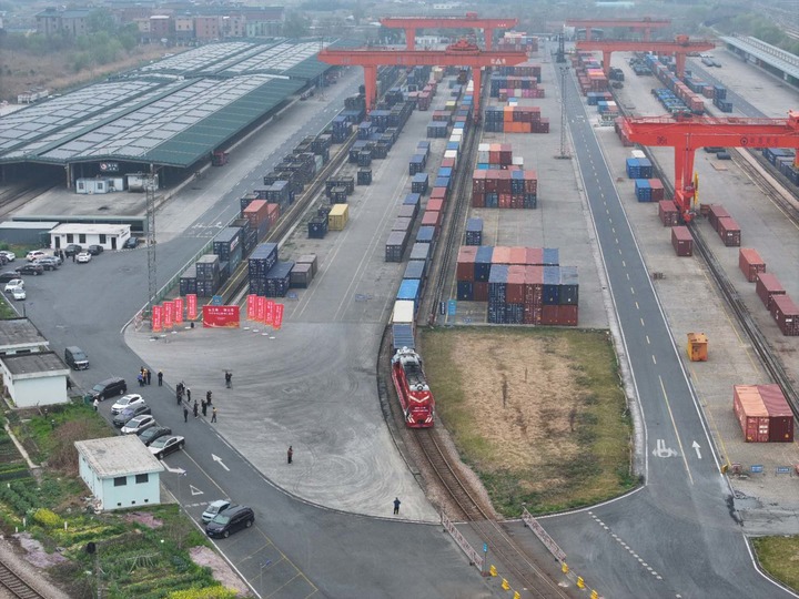 3月26日,一列满载浙江本土化纤产品的货运班列从杭州萧山站缓缓开出,驶向目的地广东佛山,标志着杭州首开至佛山化纤品牌专列。该趟班列的首发,构建起杭州与佛山两地产业协作的新起点,有效帮助产业链上的企业降本增效。(记者魏一骏)