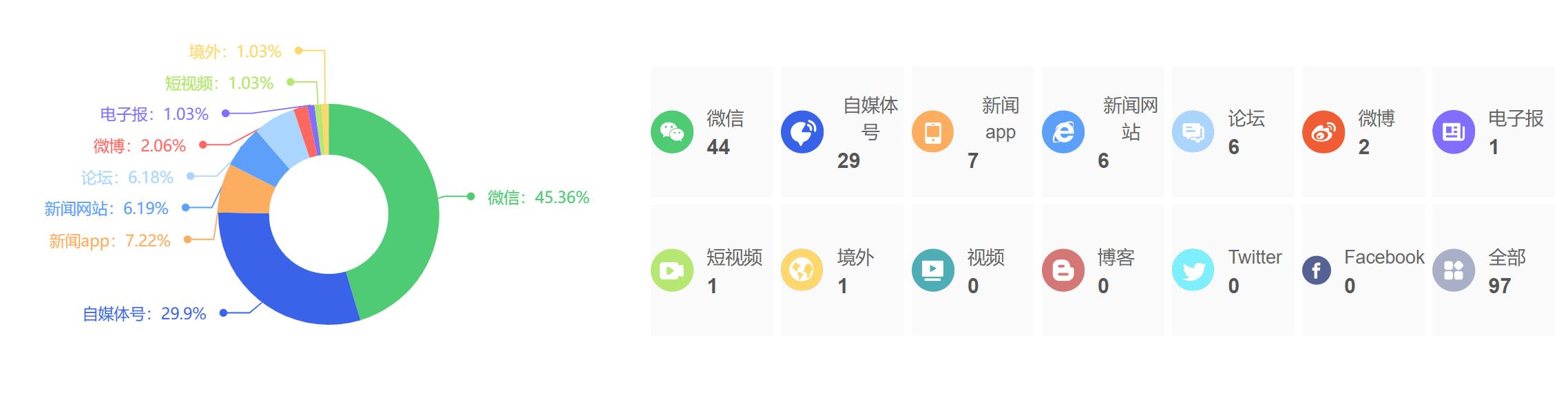 截至目前,该文章在互联网上传播总量为97篇,其中4月8日是信息发布的高峰期。各信源的信息发布情况中,微信信息占比最大,其次是自媒体号和新闻APP,信息量分别为44篇、29篇、7篇,占比分别为45.36%、29.9%、7.22%。(数据来源:新华睿思系统)
