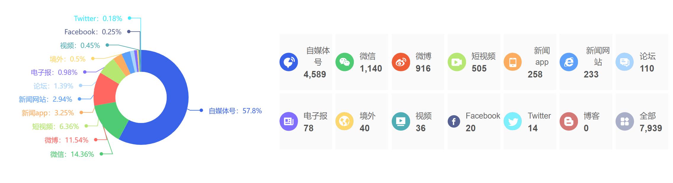 截至目前,该文章在互联网上传播总量为7939篇,其中4月23日是信息发布的高峰期。各信源的信息发布情况中,自媒体号信息占比最大,其次是微信和微博,信息量分别为4589篇、1140篇、916篇,占比分别为57.8%、14.36%、11.54%。(数据来源:新华睿思系统)