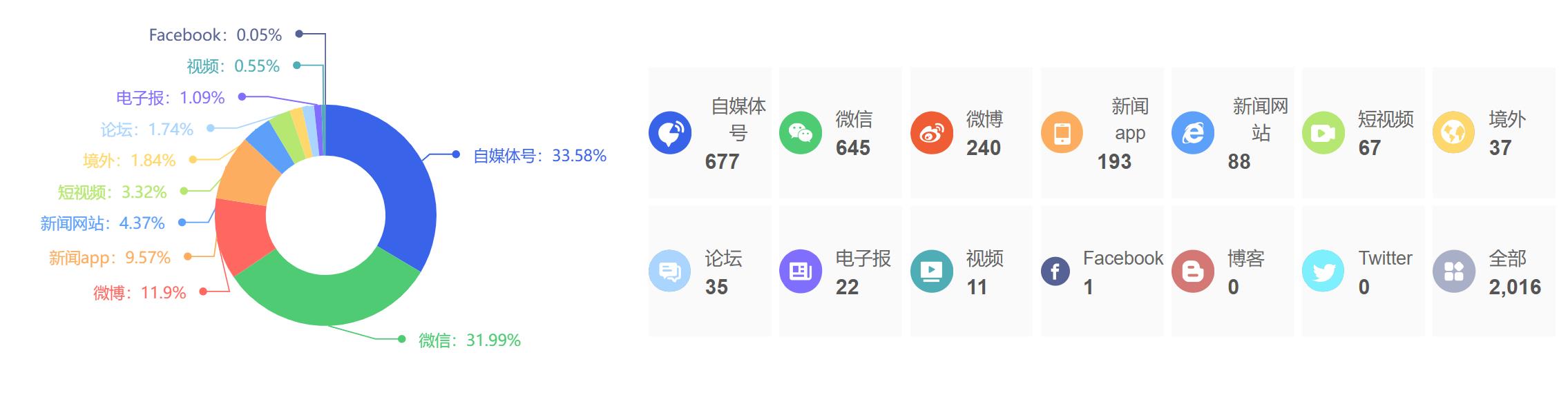 截至目前,该文章在互联网上传播总量为2016篇,其中4月22日是信息发布的高峰期。各信源的信息发布情况中,自媒体号信息占比最大,其次是微信和微博,信息量分别为677篇、645篇、240篇,占比分别为33.58%、31.99%、11.9%。(数据来源:新华睿思系统)