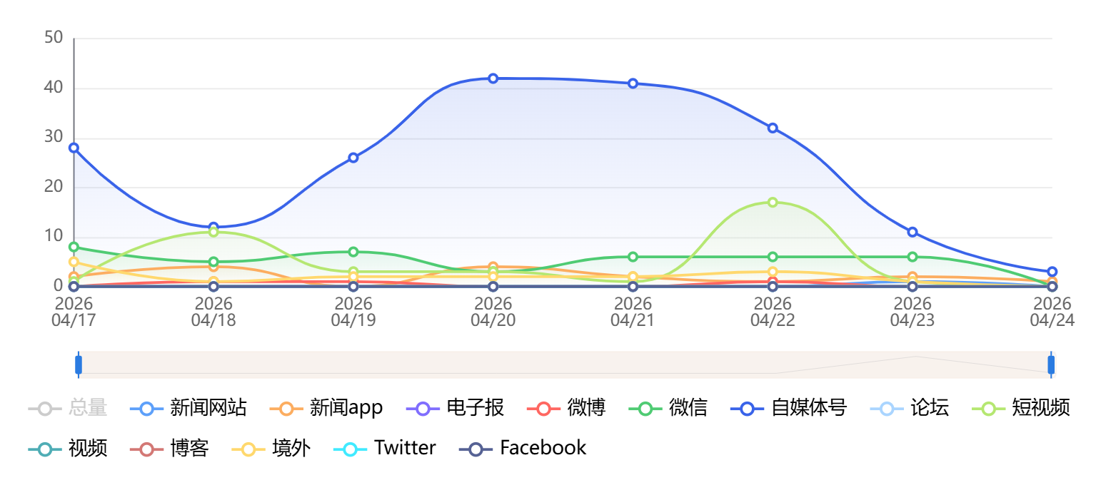 截至目前,该文章在互联网上传播总量为309篇,其中4月20日是信息发布的高峰期。各信源的信息发布情况中,自媒体号信息占比最大,其次是微信和短视频,信息量分别为195篇、41篇、37篇,占比分别为63.11%、13.27%、11.97%。(数据来源:新华睿思系统)