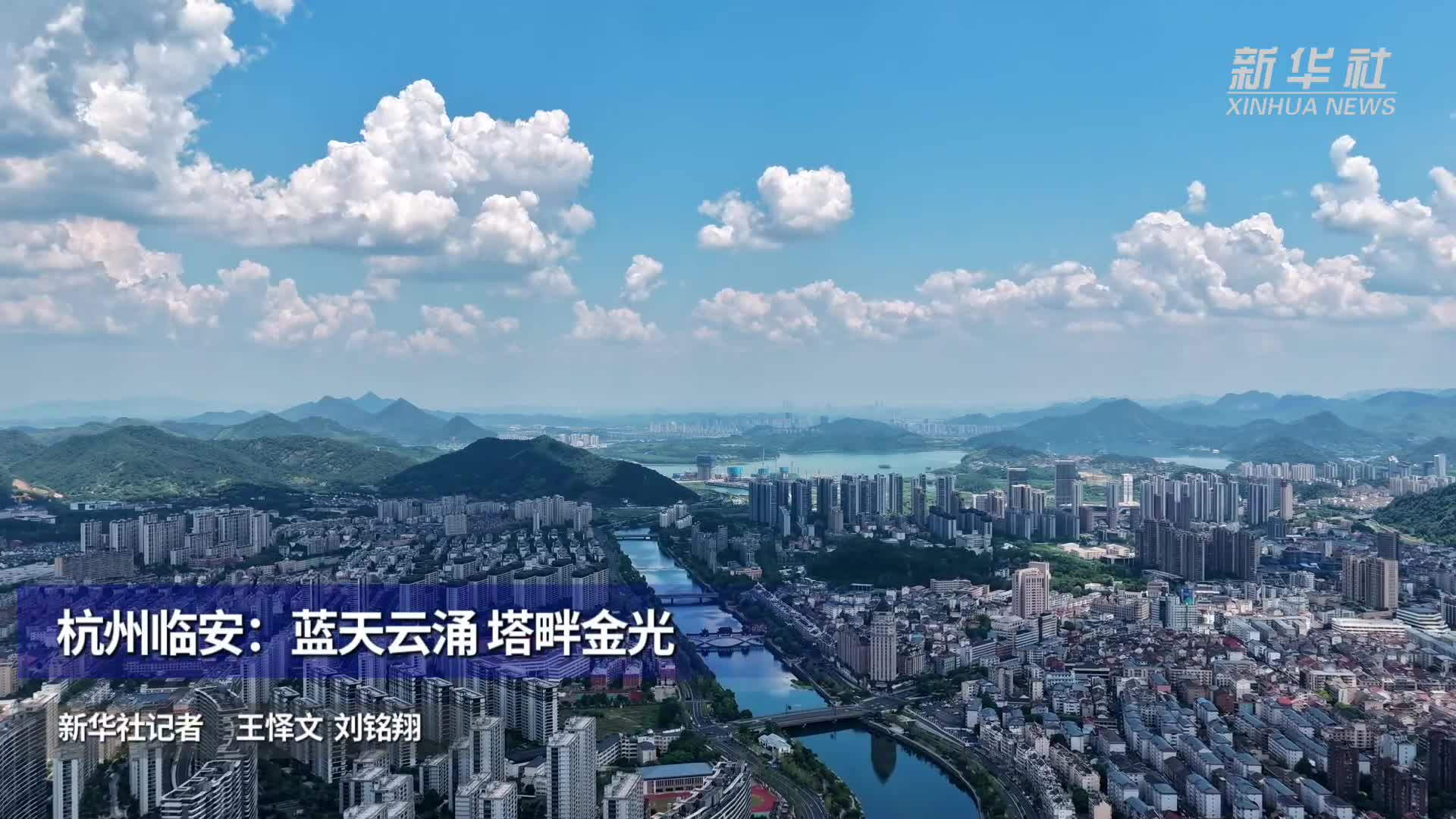 杭州临安:蓝天云涌 塔畔金光
