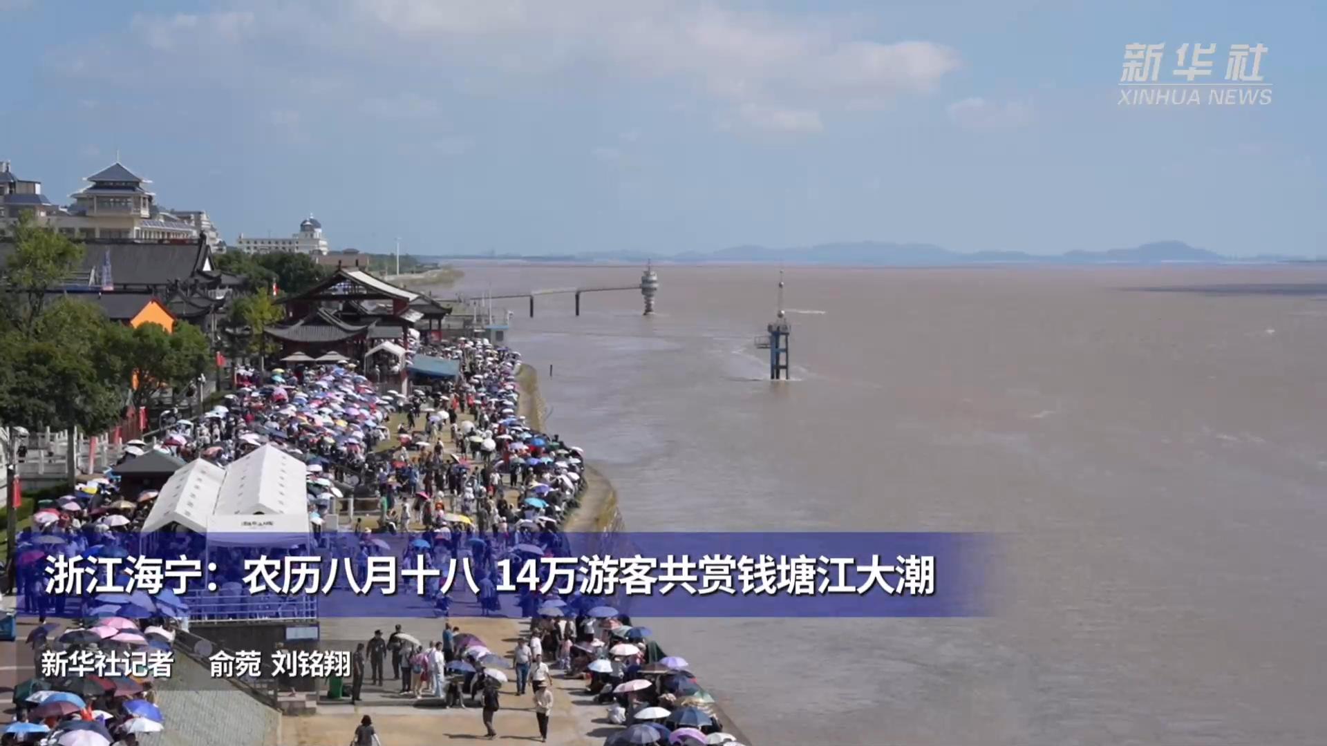浙江海宁:农历八月十八 14万游客共赏钱塘江大潮