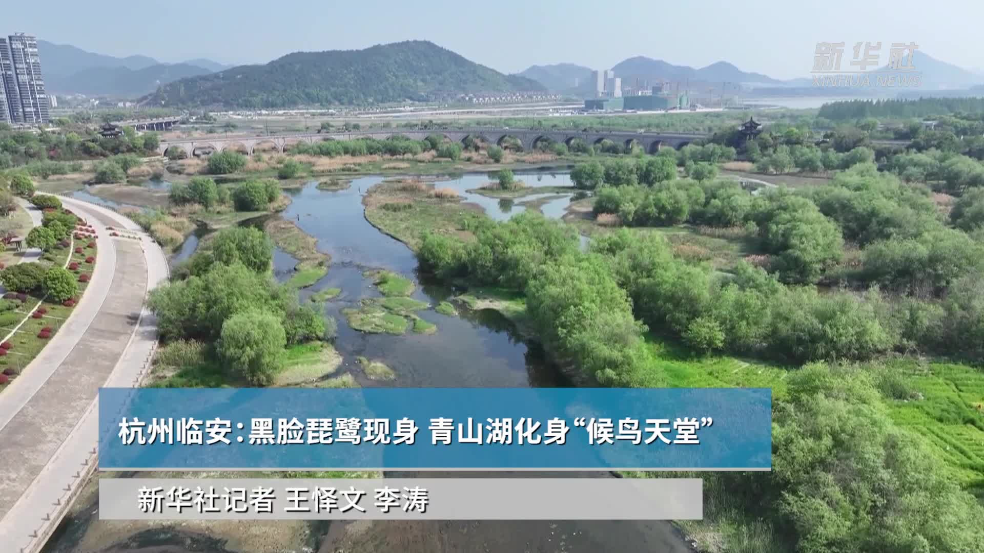 杭州临安:黑脸琵鹭现身 青山湖化身“候鸟天堂”